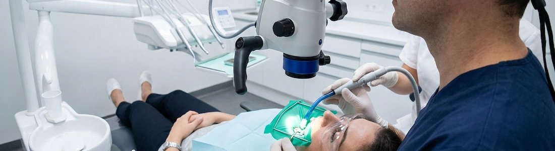 Procedura leczenia pod mikroskopem, mimo że brzmi skomplikowanie, jest dla Ciebie całkowicie bezbolesna. Zabieg zawsze rozpoczynamy od podania skutecznego znieczulenia miejscowego. Następnie zakładamy koferdam - specjalną gumową osłonę, która izoluje leczony ząb od reszty jamy ustnej.